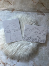 These one of a kind paint kits are so fun for all ages! Each canvas design is hand drawn by me and includes 6 colors of high quality paint and a paintbrush!