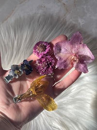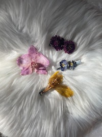 These pretty clips are made from real dried flowers that are coated in UV resin and have a clip attached for easy wear! These work great on many hair lengths and styles!
