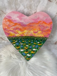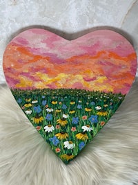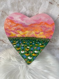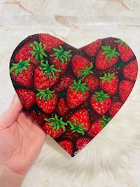 Layers of bright red strawberries on the cutest 8” heart shaped canvas!