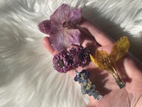 These pretty clips are made from real dried flowers that are coated in UV resin and have a clip attached for easy wear! These work great on many hair lengths and styles!