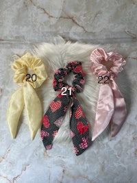 Check out my collection of scrunchies, headbands, bandanas, scrunchie scarves, bows and bucket hats!