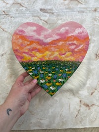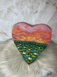 Layers of bright red strawberries on the cutest 8” heart shaped canvas!