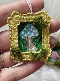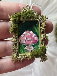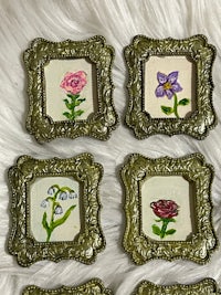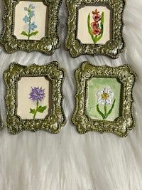 My smallest paintings ever just measuring about 1.5 inches! I created some pretty frames for them too and you have the option of adding string for an ornament or to easily hang them with!